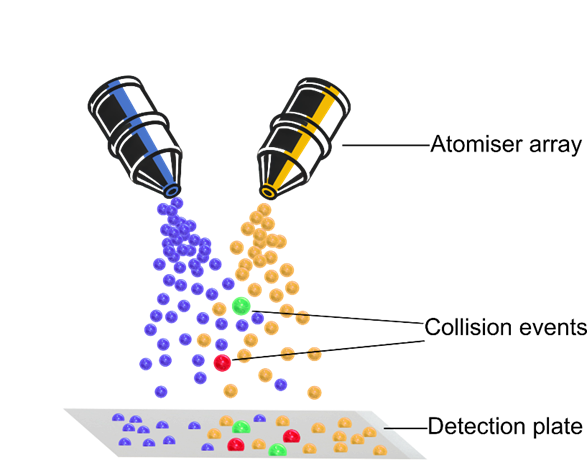 An aerosol reactor works by spraying tiny droplets or particles through a mist, which then transform into COFs or MOFs. Think of it as using a spray paint can to create a detailed mural. Each droplet has all the ingredients needed to form our materials, and when they meet, they stick together in just the right way.
